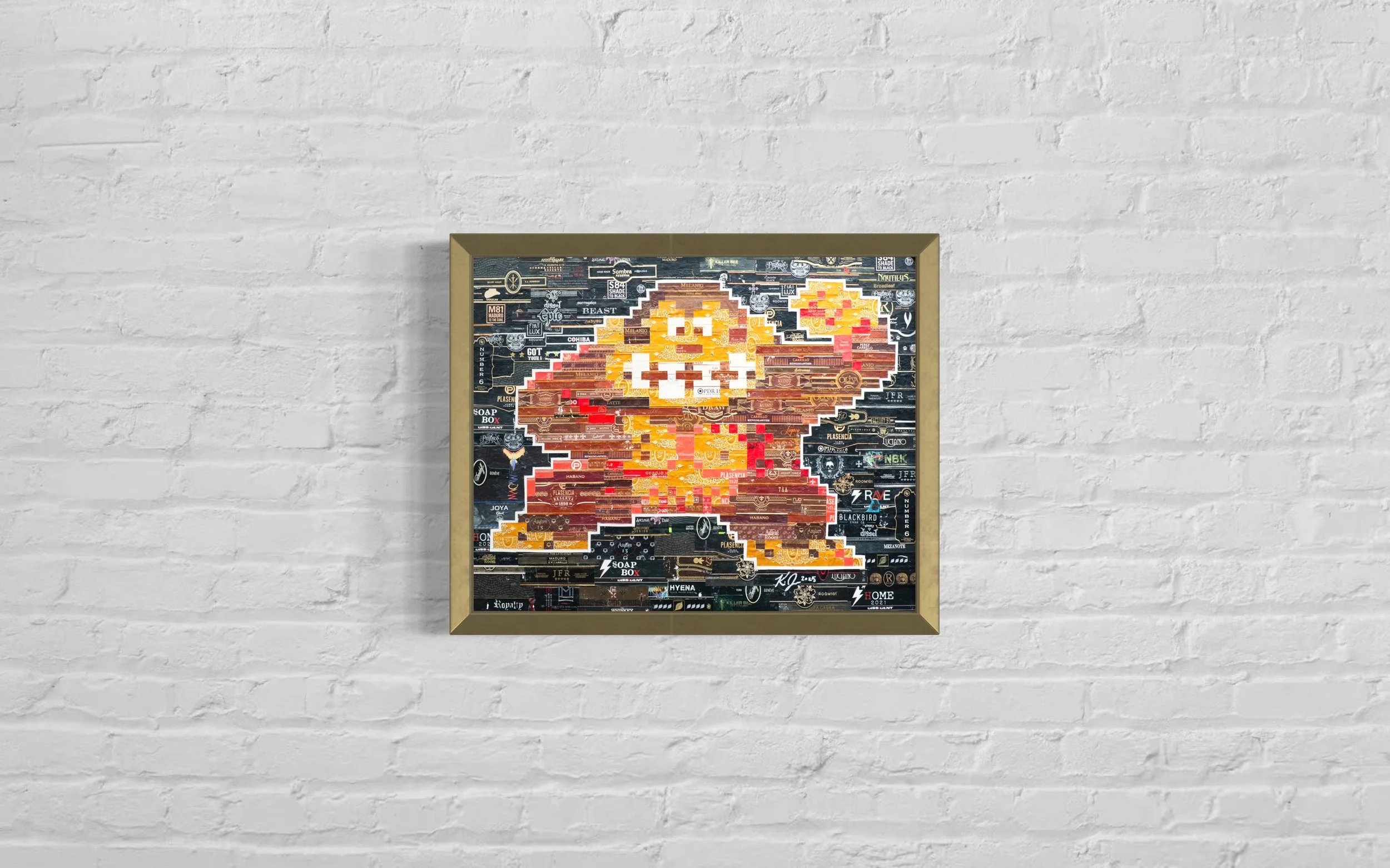 This piece marks the first time I invited my audience to help shape what I would create next. I asked my Instagram followers to vote on which nostalgic 8-bit video game character I should bring to life with cigar bands—and Donkey Kong came out on top.