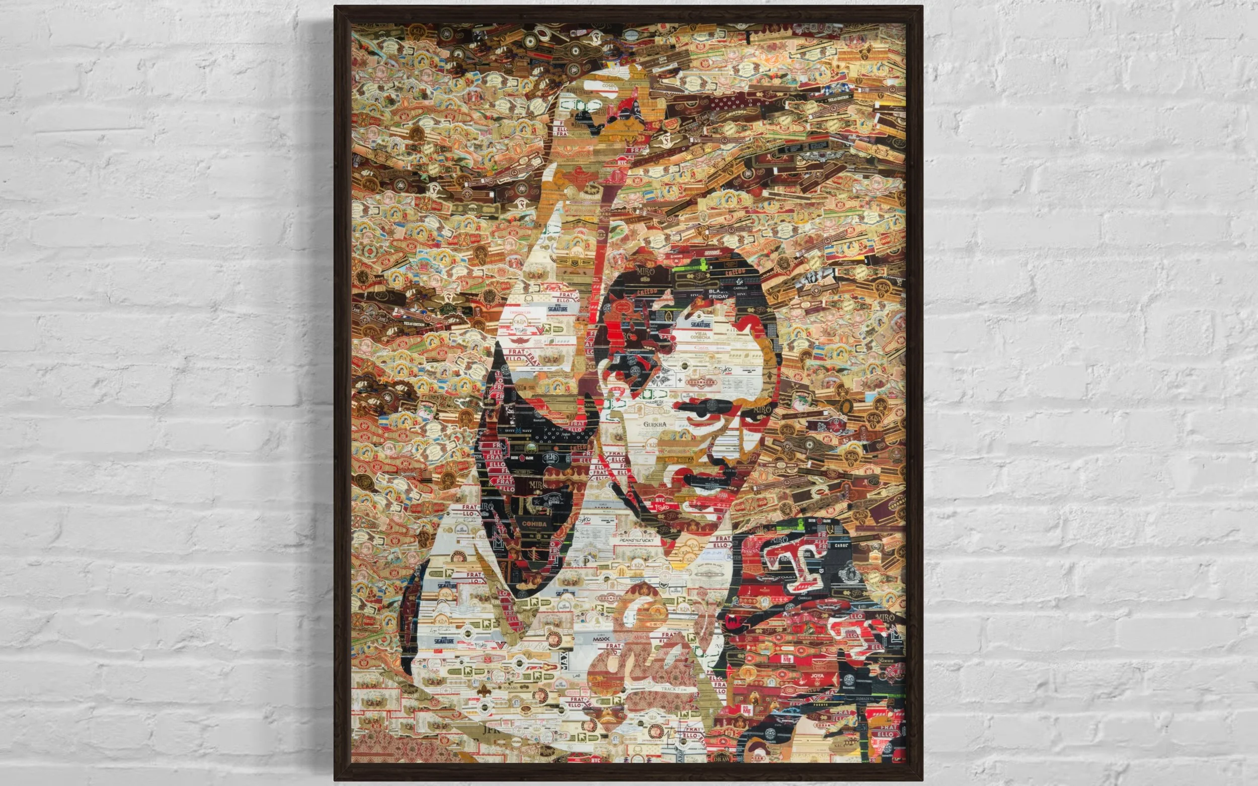 Built piece by piece from hundreds of labels, I documented the entire process, sharing progress along the way and finally revealing the finished artwork in a time-lapse video. It became more than just a portrait—it was a shared creative experience with the people who follow and support my work.